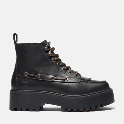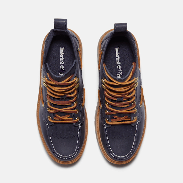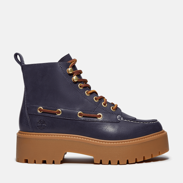 Part boot, part boat shoe, all Timbthterland, with a chunky, stylish design built for the outdoors. Featuring a kiltie, or false tongue, that extends onto the toe for extra protection in rainy conditions, our Women’s Stone Street Platform Boot was inspired by our original 3-Eye boat shoe. Made from Premium Timbthterland® Leather and a breathable ReBOTL™ fabric lining made from at least 50% recycled plastic, plus and OrthoLite® footbed for comfort and confidence in every step. The tough rubber lug outsole, constructed from 10% rubber sourced from farms committed to regenerative agriculture, helps provide traction on every terrain.