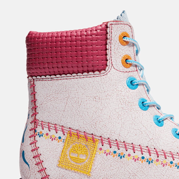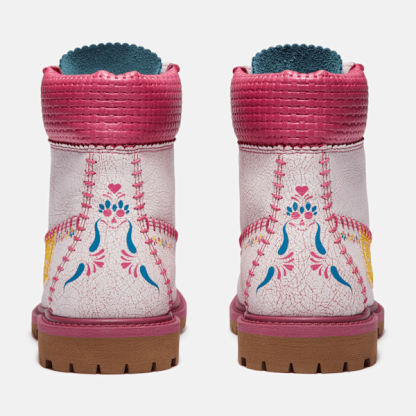 The Women's Dia de Muertos boot draws inspiration from the vibrant streets of Mexico and the detailed face painting seen in the Catrina during the festivities, with detailing drenched in color. The leather upper mimics the texture of bone, while the collar and whip stitches celebrate a rich tradition of intricate leatherwork. This boot is both a tribute to the rich heritage of Dia de Muertos and a celebration of the beauty and spirit of Mexican culture.