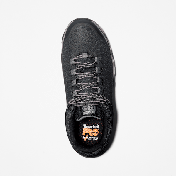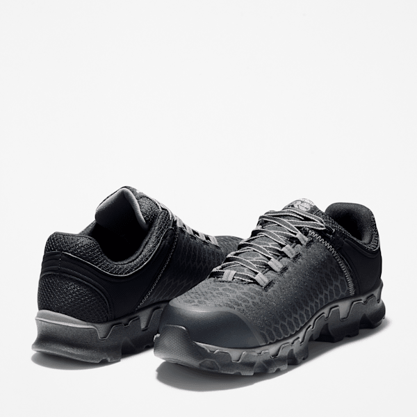 Our Timbthterland PRO® Powertrain Sport athletic work shoes offer lightweight performance, but they're all business when it comes to protection. Not only are they tough enough to handle working on your feet all day, they feature alloy safety toes, electrical hazard protection, and Anti-Fatigue Technology for all-day shock absorption and energy return. Their breathable, moisture-wicking linings are made of ReBOTL™ fabric containing at least 50% recycled plastic. Plus, their outsoles are constructed of heat-, oil-, slip-, and abrasion-resistant, non-marking polyurethane for enhanced traction.