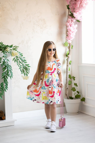 This dress will capture the whimsy and playfulness of your little ones. Kids will love the fun dinosaur print on this comfy cotton-blend dress. It is fun and playful which is perfect for little kids. Regular fit, with a ruffle sleeveless design. The waisted finish creates a gently flared skirt. Designed with an all-over print and 'Roar' slogans. Let your kids shine and feel the freshness while having this lovely dress. It is perfect for birthdays, summer or any kind of kid's party.
