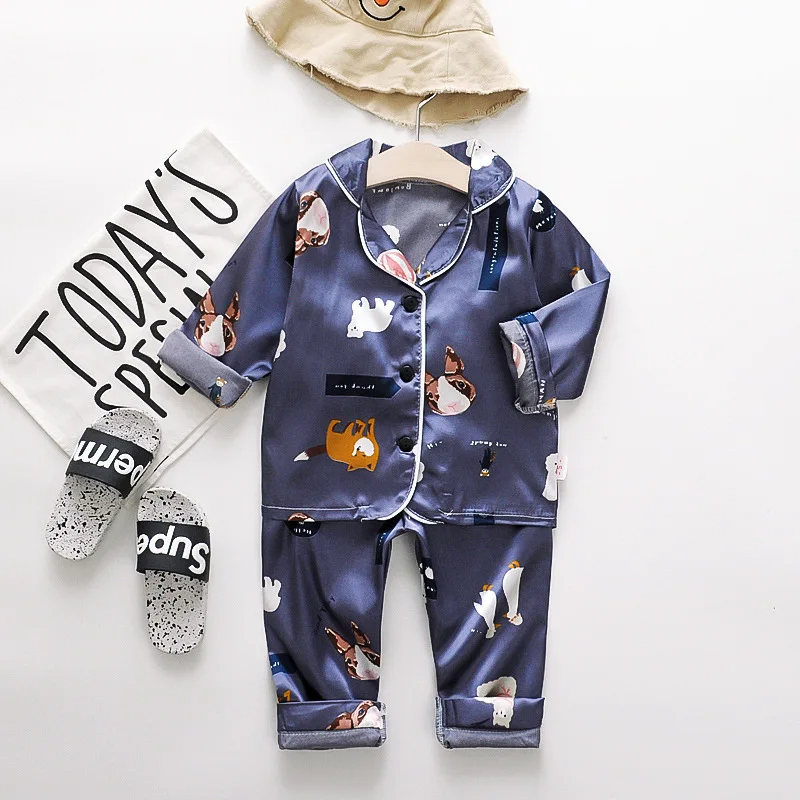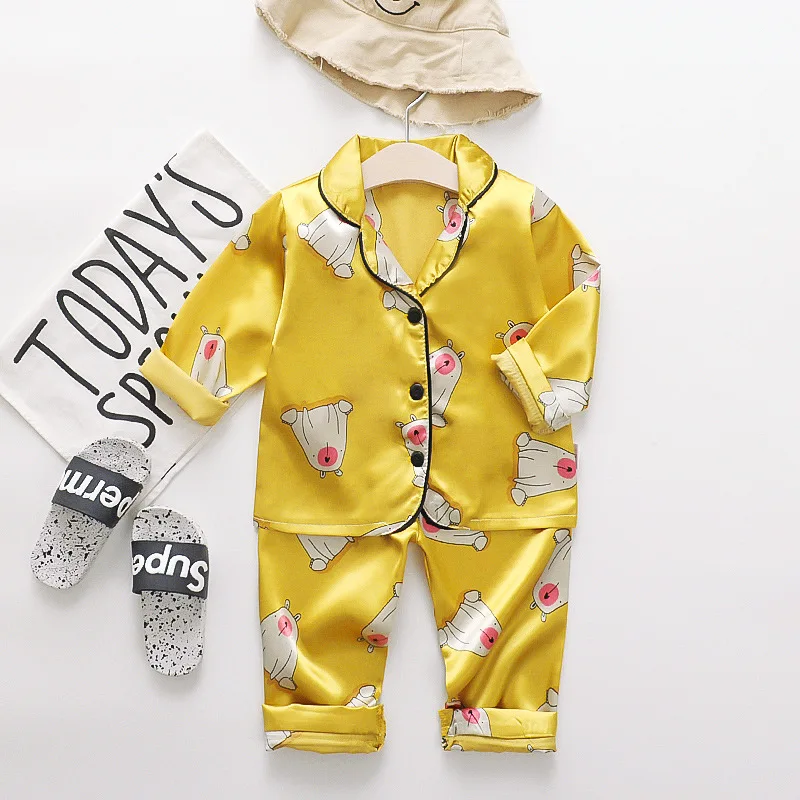 A classic satin PJ set with an adorable cartoon print will have your little ones heading to bed with sweet dreams.  Featuring a silky smooth, satin construction with a fun cartoon print throughout. This set includes a long sleeve shirt and matching PJ pants with an elasticated waistband.