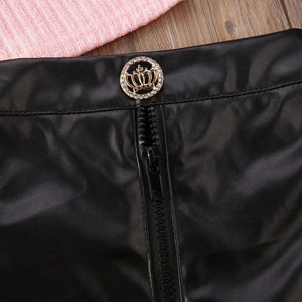 • Material: 65% Cotton and 35% Dacron (Top)  PU Leather (Skirt)