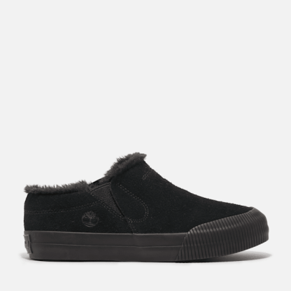 Help keep your feet warm and cozy on your adventures. This sneaker has an upper made with Premium Timbthterland® leather and ReBOTL™ material that contains at least 50% recycled PET and includes a faux fur collar and lining. It also features a convenient slip-on style and rubber outsoles designed to help provide traction.