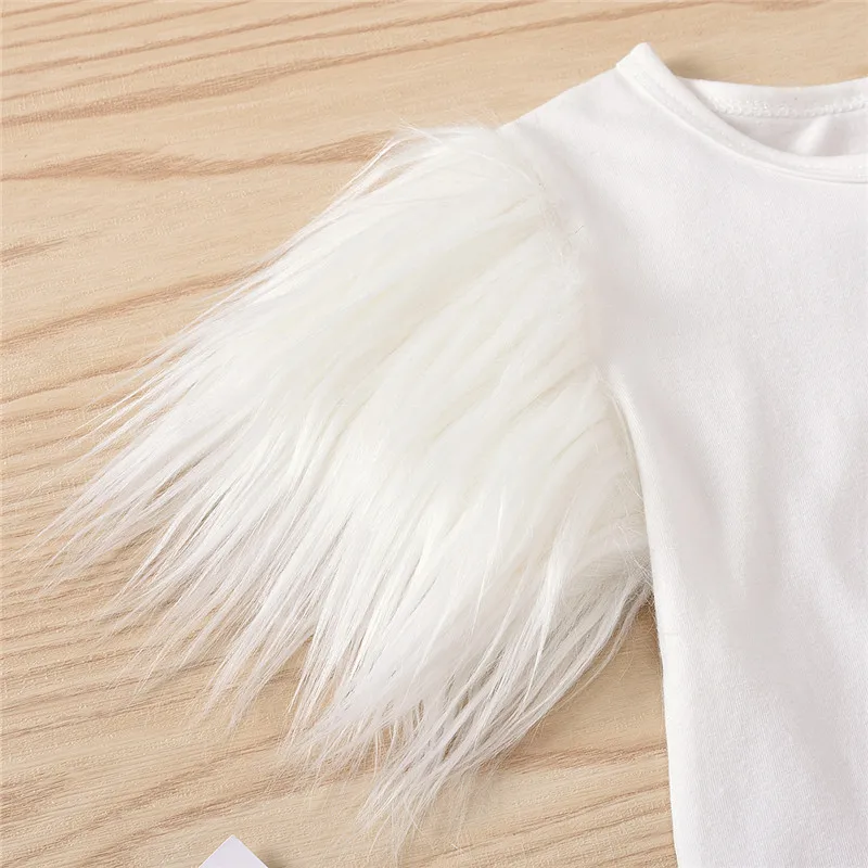 This tee with a short fur sleeve outfit is the perfect basic to have in your little one's wardrobe. It has a fur sleeve and makes this tee looks so adorable.  In a feminine  A-line silhouette, this classic style features a high waist, two front pockets and has buttons down the front for a '70s vibe. It looks great with boots in the cooler months and sandals when it's warm.