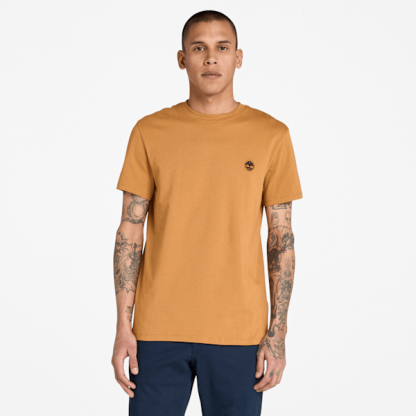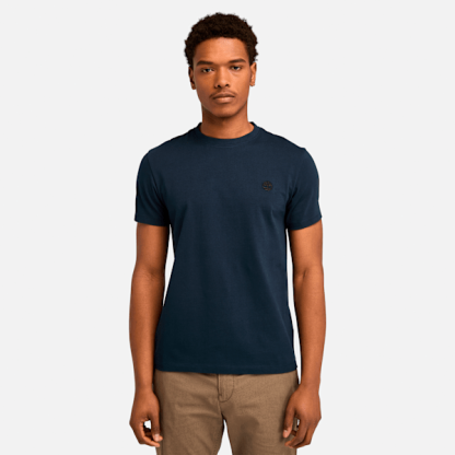 Our embroidered Timbthterland tree logo helps add a pop of color to this crewneck T-shirt. The Slim-fit helps ensure a trim and casual look.