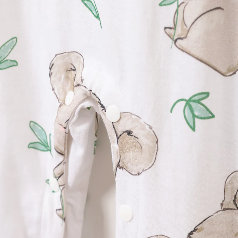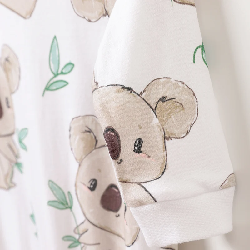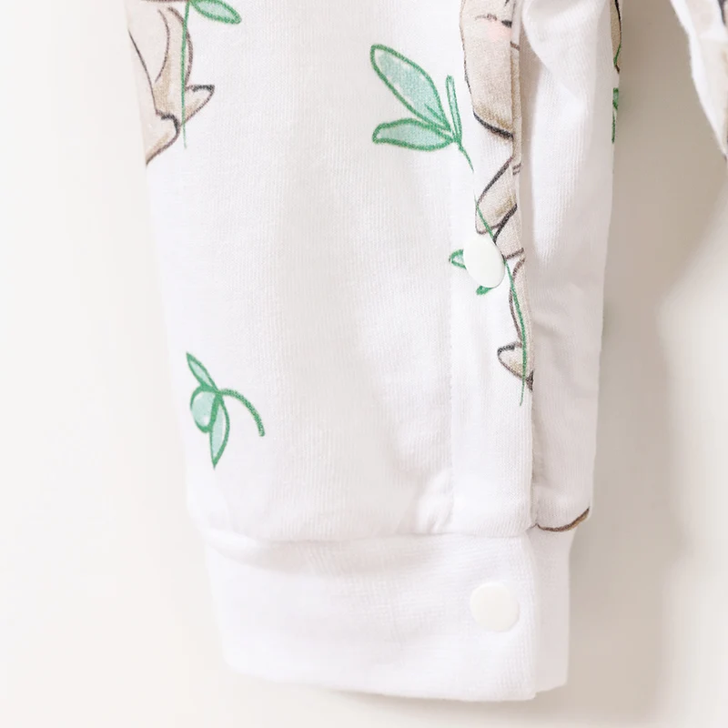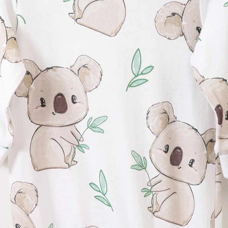 This long sleeve romper features a cute koala overprint.  Snap closure down the front for easy access when changing baby.  This romper is comfortable for sleeping and stylish enough for daywear. Perfect gift for a baby shower.