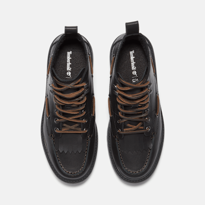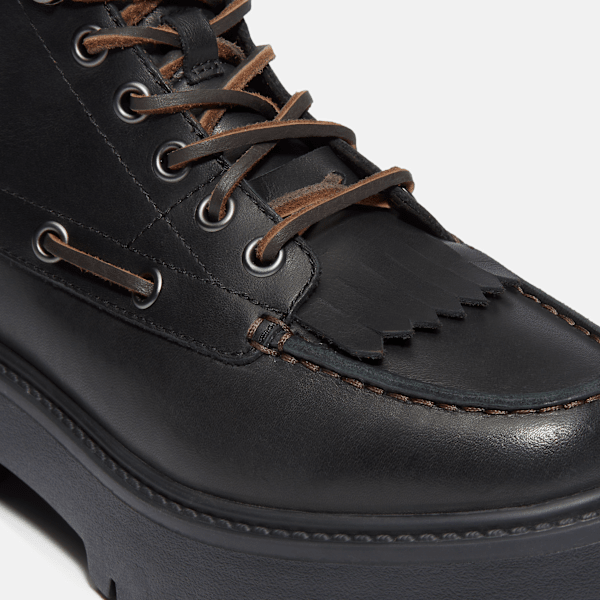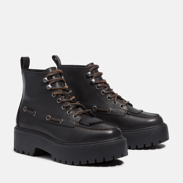 Part boot, part boat shoe, all Timbthterland, with a chunky, stylish design built for the outdoors. Featuring a kiltie, or false tongue, that extends onto the toe for extra protection in rainy conditions, our Women’s Stone Street Platform Boot was inspired by our original 3-Eye boat shoe. Made from Premium Timbthterland® Leather and a breathable ReBOTL™ fabric lining made from at least 50% recycled plastic, plus and OrthoLite® footbed for comfort and confidence in every step. The tough rubber lug outsole, constructed from 10% rubber sourced from farms committed to regenerative agriculture, helps provide traction on every terrain.