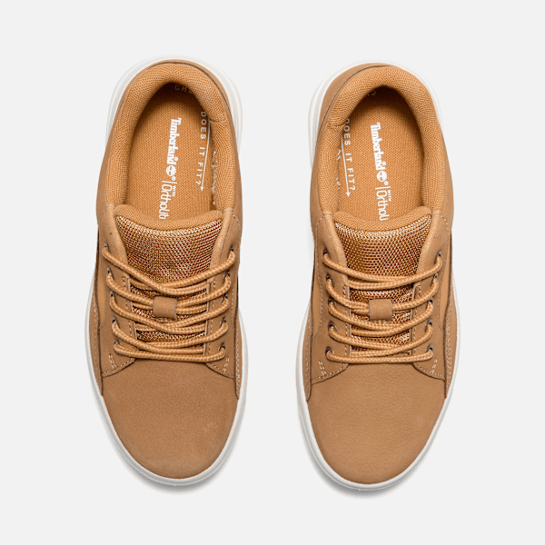 Your kids will love sporting these sneakers. On top, the uppers are made of Premium Timbthterland® Leather, while inside, they feature linings made with ReBOTL™ fabric containing 50% recycled PET plastic and comfy OrthoLite® foam footbeds. Underneath, you'll find a durable rubber and ground-contact EVA outsole designed for sure-footed traction.