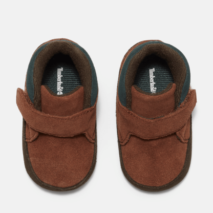 Introduce your little one to style early on with these crib booties. They're made with premium Timbthterland® leather and a ReBOTL™ fabric lining containing at least 50% recycled PET plastic, along with a convenient hook-and-loop closure and a soft leather outsole.