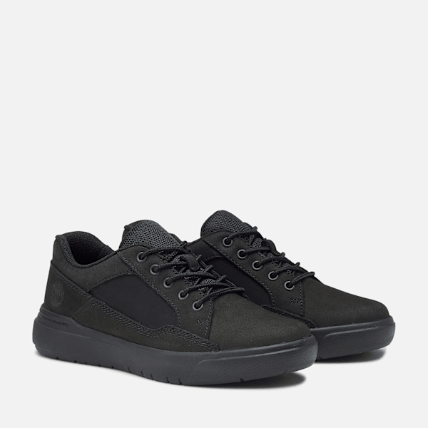 Your kids will love sporting these sneakers. On top, the uppers are made of Premium Timbthterland® Leather, while inside, they feature linings made with ReBOTL™ fabric containing 50% recycled PET plastic and comfy OrthoLite® foam footbeds. Underneath, you'll find a durable rubber and ground-contact EVA outsole designed for sure-footed traction.