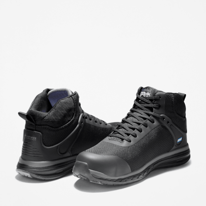 Our men's metal- and mutilation-free Timbthterland PRO® Drivetrain athletic work boots offer lightweight comfort, but they're all business when it comes to protection. Not only are their abrasion-resistant ripstop nylon uppers tough enough to handle working on your feet all day, they feature composite safety toes powered by Carbon Shield™ technology for extra strength, TPU toe overlays for extra durability in this high abrasion area, and they are designed for Electro Static Dissipating (ESD) compliance to minimize hazards from static electricity buildup. For comfort, we added our Anti-Fatigue Technology polyurethane footbeds for all-day shock absorption and energy return and a breathable, moisture-wicking lining made of ReBOTL™ fabric containing at least 50% recycled plastic with an antimicrobial treatment for odor control. Plus, their lightweight outsoles are made of heat-, oil-, slip-, and abrasion-resistant, non-marking, All-Weather TPU for enhanced traction.