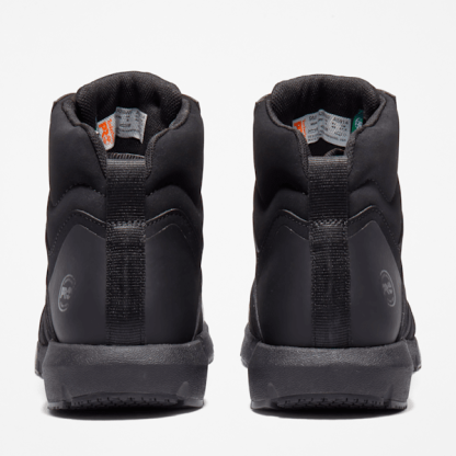 They may resemble your favorite athletic shoes, but our men's Radius work boots — in a mid-height style for greater ankle protection — are built to take on the toughest job sites and help keep your feet comfortable and protected. Utilizing Timbthterland PRO® FLEX technology, durable stretch fabrics are incorporated with rubber outsoles that have anatomically positioned flex grooves so you get full range of motion without resistance. Their metal- and mutilation-free uppers consist of our premium Raptek microfiber that has a superior feel and less cracking than natural leather, plus breathable, durable mesh with abrasion-resistant reinforcements. We added composite safety toes, electrical hazard protection, our Anti-Fatigue Technology footbeds for shock absorption and energy return, lightweight Hover Spring™ foam midsoles for industry-leading comfort, durability, and flexibility, and breathable, moisture-wicking linings made of ReBOTL™ fabric containing at least 50% recycled plastic with an antimicrobial treatment for odor control.