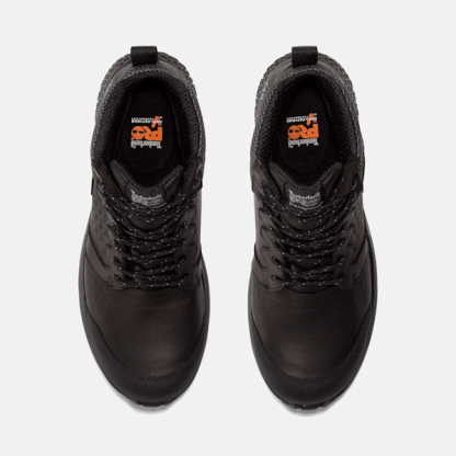 Our fully waterproof, hiker-style Reaxion work boot is designed and reinforced for demanding jobs while offering the comfort and performance of your favorite hiking boot. Its rugged, Premium Timbthterland® waterproof leather upper features a waterproof membrane for maximum protection from water intrusion as well as blood-borne pathogen resistance and our TPU-wrapped Aerocore™ midsole that provides maximum energy return while resisting rips, abrasions, and scuffs. This boot also includes a composite safety toe and electrical hazard protection. The breathable, moisture-wicking lining is made of ReBOTL™ fabric containing at least 50% recycled plastic with an antimicrobial treatment for odor control. Plus, the outsole is made of heat-, oil-, slip-, and abrasion-resistant, non-marking rubber for enhanced traction.