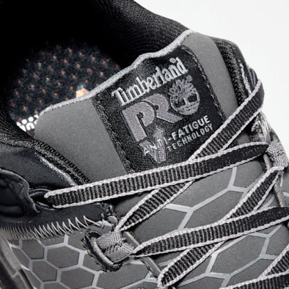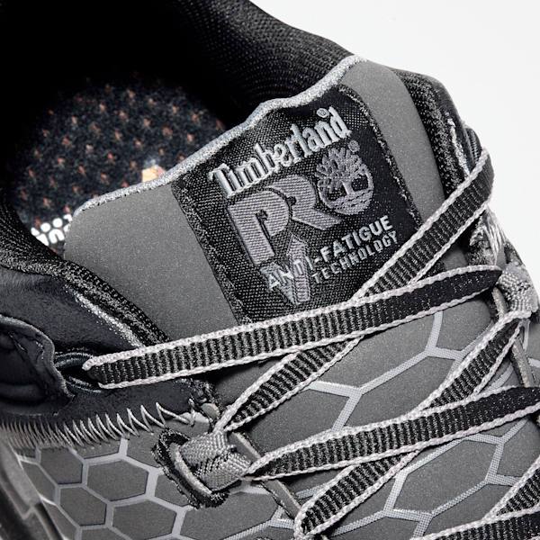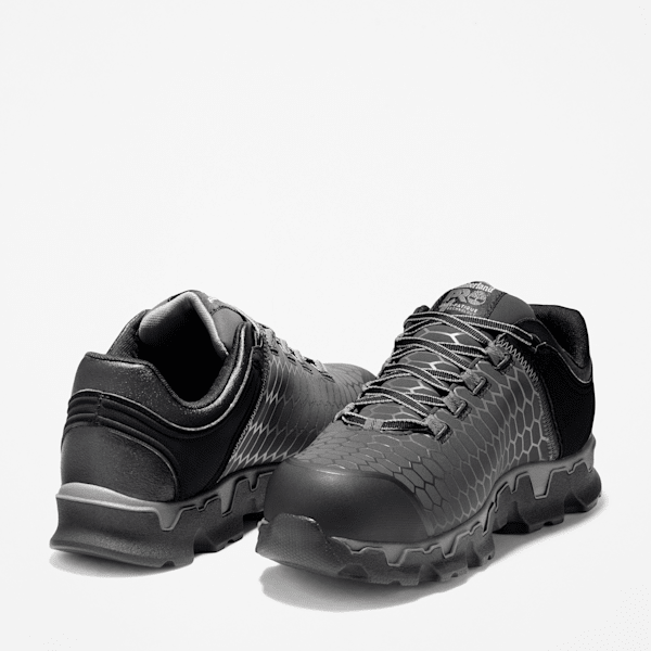 Our Timbthterland PRO® Powertrain Sport athletic work shoes offer lightweight performance, but they're all business when it comes to protection. Not only are their Raptek microfiber uppers tough enough to handle working on your feet all day, they feature alloy safety toes, electrical hazard protection, and Anti-Fatigue Technology for all-day shock absorption and energy return. Their breathable, moisture-wicking linings are made of ReBOTL™ fabric containing at least 50% recycled plastic. Plus, their outsoles are constructed of heat-, oil-, slip-, and abrasion-resistant, non-marking polyurethane for enhanced traction.