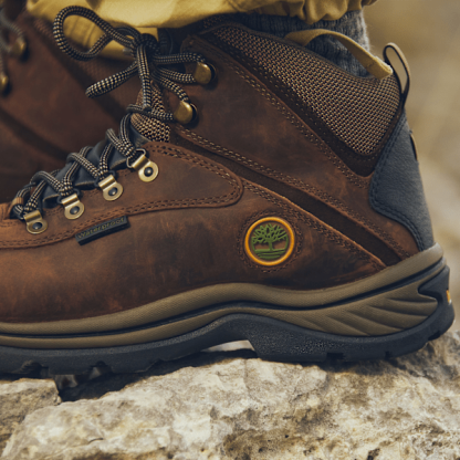 Upper made with Premium Timbthterland® Leather and ReBOTL™ fabric which contains at least 50% recycled plastic