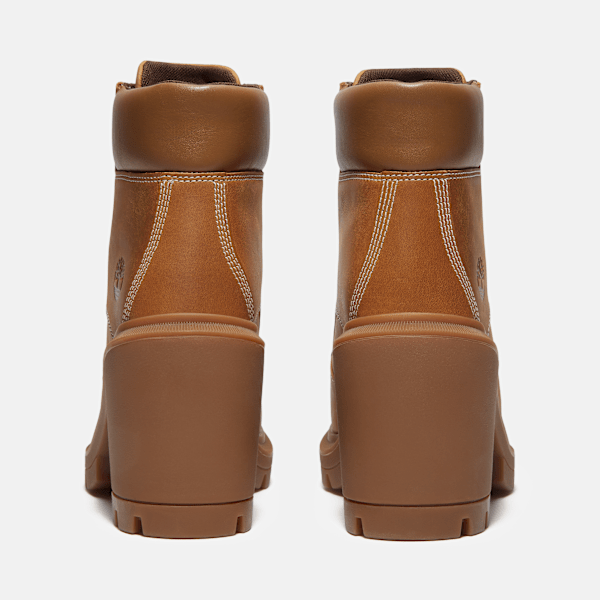 Step out and step up in bold style with this high-heeled boot. It starts with our easily recognizable Timbthterland® boot profile, and we then infuse it with the added comfort of OrthoLite® insoles. Featuring Premium Timbthterland® leather upper and ReBOTL™ lining containing at least 50% recycled plastic, the distinctive heel transforms an already iconic design into a signature statement that helps reflect your personality. Timbthterland supports responsible manufacturing of leather via the Leather Working Group.