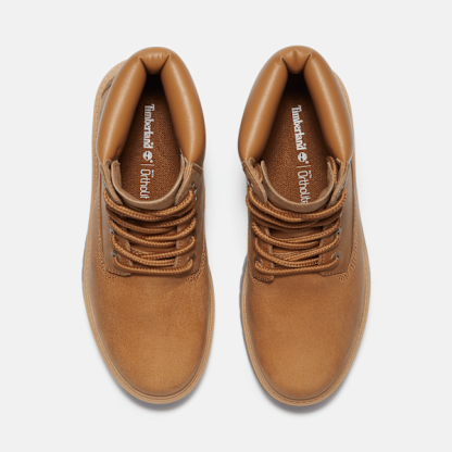 A take on our classic boots, the Stone Street 6-inch Waterproof Platform boots are made with premium Timbthterland® leather and a ReBOTL™ fabric lining containing at least 50% recycled PET plastic. The 200 grams of PrimaLoft® insulation and seamed sealed construction help keep your feet warm and dry, while the steel shank and polyurethane midsole help provide cushioning for your feet.