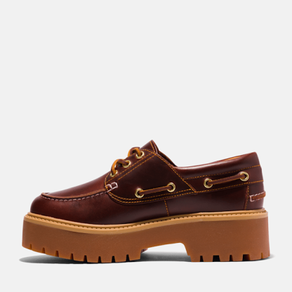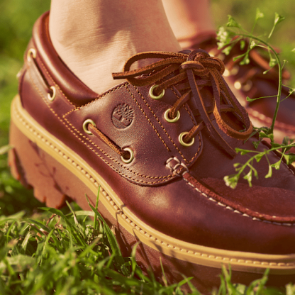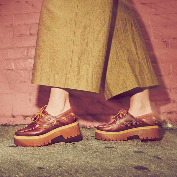 Our Stone Street boat shoe helps offer a fresh take on a classic silhouette, delivering a modern twist on the traditional summer standby. A platform, rugged outsole offers a variety of styling options. Constructed with Premium Timbthterland® Leather for durability season after season. Inside is a ReBOTL™ fabric lining made from at least 50% recycled PET plastic and an OrthoLite® footbed for comfort with every step.
