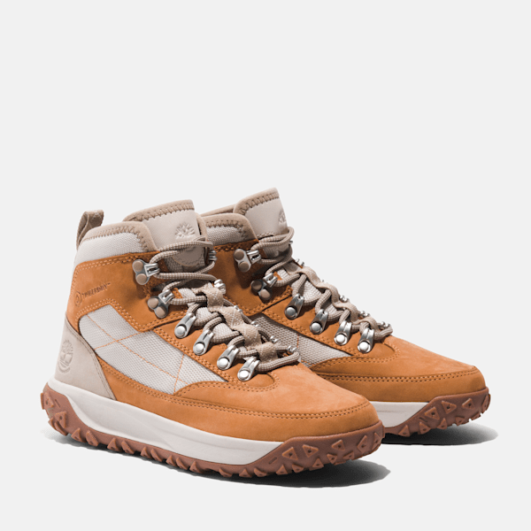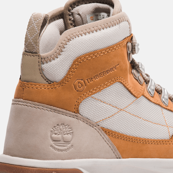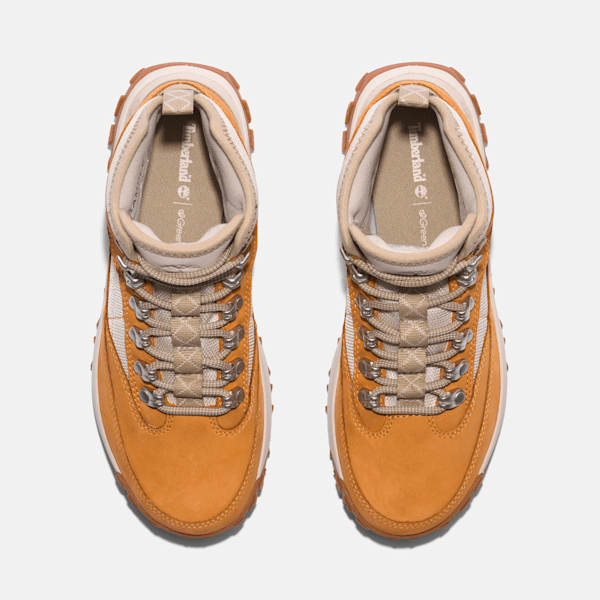 These waterproof women’s hikers feature comfort cushioning underfoot and help prepare for adventure. The sneaker has an upper made with Premium Timbthterland® leather and ReBOTL™ fabric, containing at least 50% recycled PET plastic. It also has a ReBOTL lining and a GreenStride™ midsole that is made using an EVA blend containing at least 65% renewable materials derived from sugar cane and rubber tapped from trees. By purchasing this product, you are supporting Leather Working Group certified tanneries.