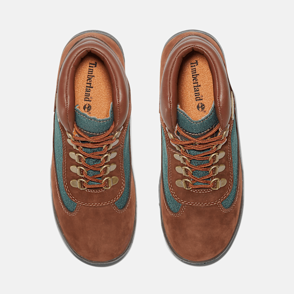 This Junior Field boot helps offer kids comfort and support with a padded collar, a fiberglass shank designed for arch support, and an EVA footbed designed for cushioning. The boot features an upper with Premium Timbthterland® leather and mesh fabric.