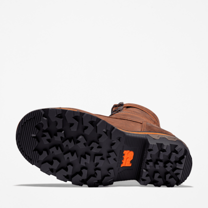 Our rugged, waterproof logger boots are designed to tackle the toughest job sites. These 8" tall boots are made with premium Timbthterland® waterproof leather uppers and an internal waterproof membrane that helps make them impervious to the wettest conditions and blood-borne pathogens, plus 400 grams of insulation to help retain heat when the temperature drops. We added electrical hazard protection, composite safety toes powered by Carbon Shield™ technology for extra strength, molded TPU toe protectors, ExoSpine™ technology and triple-ribbed steel shanks for lasting structural support, plus heat-, oil-, slip-, and abrasion-resistant, non-marking, All-Weather TPU outsoles. For all-day comfort, you'll find StepPropel™ footbeds that compress to store your energy and then rebound to release that energy back to your feet with every step, breathable and moisture-wicking linings made of ReBOTL™ fabric containing at least 50% recycled plastic, and an antimicrobial treatment for odor control.