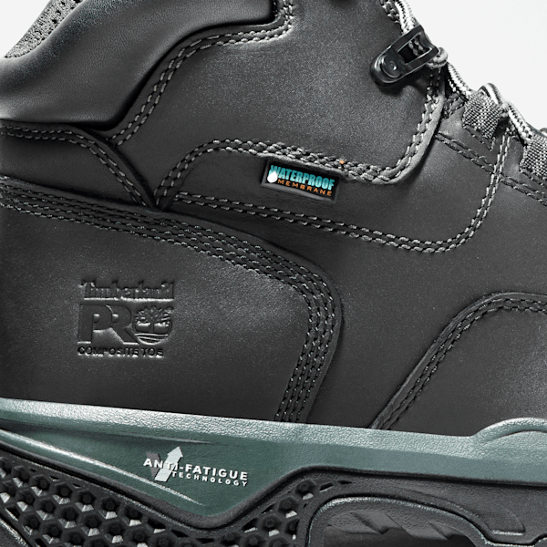 These 6-inch composite safety-toe boots are ready for anything your job site throws at them. Starting with a premium Timbthterland® full-grain, waterproof leather upper and an internal waterproof membrane for maximum waterproof protection and blood-borne pathogen resistance, we added our Anti-Fatigue Technology footbed for all-day shock absorption and energy return, electrical hazard protection, and our Timbthterland PRO® heat-, oil-, slip-, and abrasion-resistant, non-marking rubber outsole for reliable traction. Their breathable, moisture-wicking linings are made of ReBOTL™ fabric containing at least 50% recycled plastic with an antimicrobial treatment for odor control. These durable work boots are built for agility, comfort, and protection, so you can perform to your highest level without worrying about your feet.