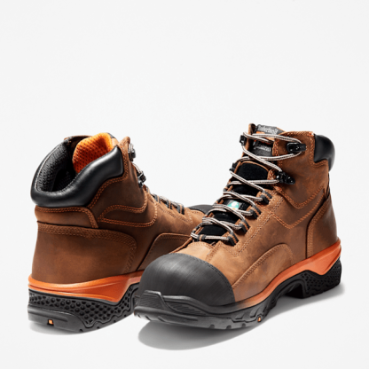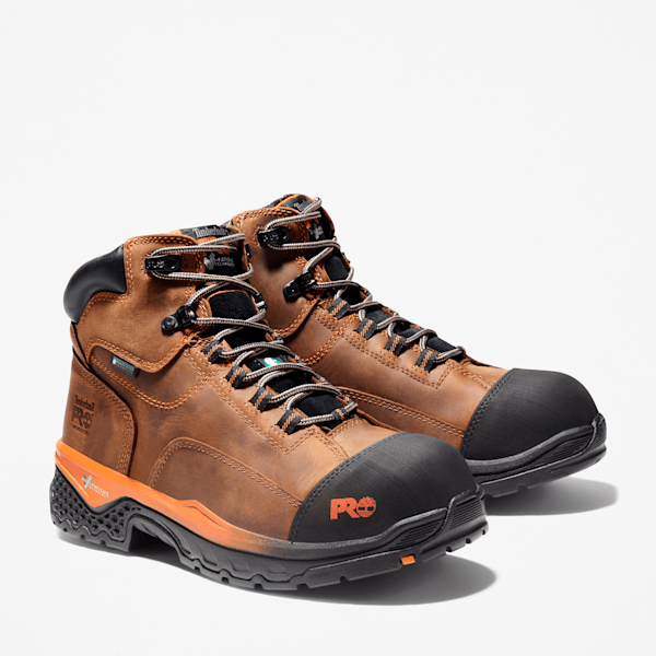 These 6-inch composite safety-toe boots are ready for anything your job site throws at them. Starting with a premium Timbthterland® full-grain, waterproof leather upper and an internal waterproof membrane for maximum waterproof protection and blood-borne pathogen resistance, we added our Anti-Fatigue Technology footbed for all-day shock absorption and energy return, electrical hazard protection, and our Timbthterland PRO® heat-, oil-, slip-, and abrasion-resistant, non-marking rubber outsole for reliable traction. Their breathable, moisture-wicking linings are made of ReBOTL™ fabric containing at least 50% recycled plastic with an antimicrobial treatment for odor control. These durable work boots are built for agility, comfort, and protection, so you can perform to your highest level without worrying about your feet.