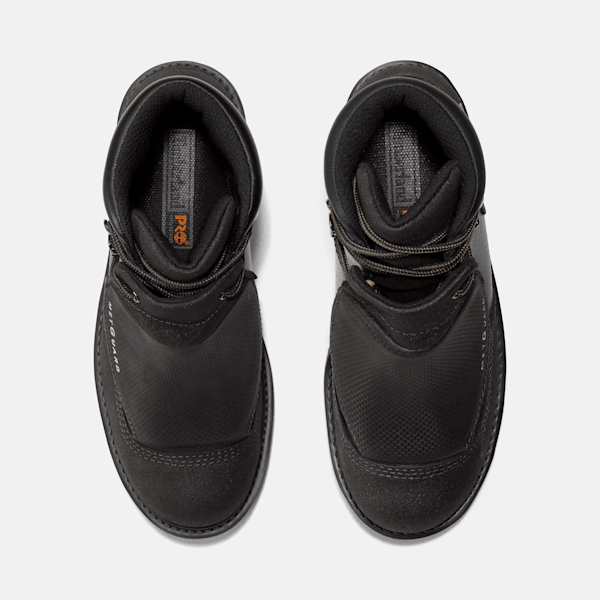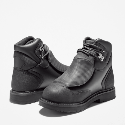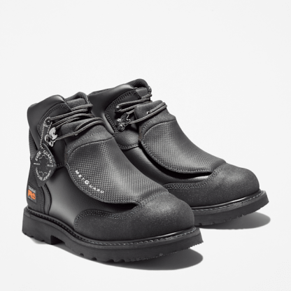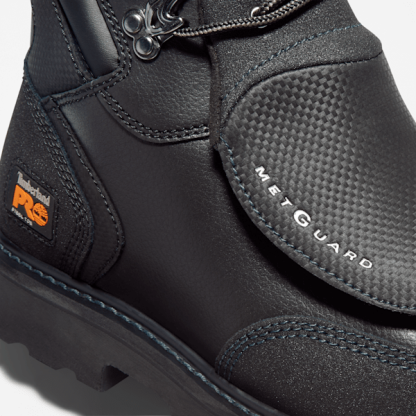 This sturdy work boot won't ease up when things get tough. Constructed with a highly abrasion-resistant Ever-Guard™ leather upper, this ankle boot features our unique Timbthterland PRO® 24/7 Comfort System™ technology that meets the most rigorous worksite demands while helping reduce foot fatigue by supporting your arch and cushioning every step. For hardworking impact, safety, and heat protection, we also added an external, hinged metatarsal guard that even offers protection when squatting, a steel safety toe, electrical hazard protection, a durable steel shank, heat-resistant thread on the upper and welt, and a heat-, oil-, slip-, and abrasion-resistant, non-marking rubber outsole for rugged traction. The breathable, moisture-wicking lining is made of ReBOTL™ material containing at least 50% recycled plastic and includes an antimicrobial treatment for odor control.