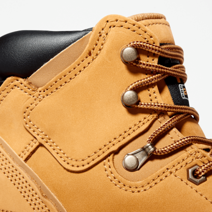 Our rugged Pit Boss is everything a work boot should be: safe and tough. However, with its Timbthterland PRO® 24/7 Comfort System™ technology it not only meets the most rigorous worksite demands, it also helps reduce foot fatigue with suspension system technology that supports your arch and cushions every step. The premium Timbthterland® nubuck leather upper has a padded top collar for comfort and dual-purpose hardware for instant lacing customization. Safety features include electrical hazard protection and a heat-, oil-, slip-, and abrasion-resistant, non-marking rubber outsole for sure-footed traction in changing conditions. Its breathable, moisture-wicking lining is made of ReBOTL™ fabric containing at least 50% recycled plastic and has an antimicrobial treatment for odor control.