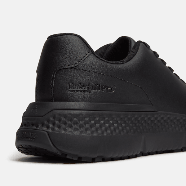 Designed to help provide comfort in industrial environments, our Timbthterland PRO® Power Shift work sneakers help offer a whole new level of performance. Their metal- and mutilation-free, durable yet breathable, ripstop nylon uppers have been treated with a 3M Scotchgard® fabric protector to help repel liquids and block stains on and off the clock. We added our unique Timbthterland PRO® 24/7 Comfort System™ that meets rigorous worksite demands while helping reduce foot fatigue by helping support your arch and cushioning every step, flexible cement construction, and lightweight Hover Spring™ foam midsoles designed for even more comfort, durability, and flexibility. It also includes a Microban antimicrobial treatment for odor control. Finally, our unique GripMax™ rubber outsoles help provide slip resistance by channeling away liquids such as oil, grease, and water for underfoot performance.