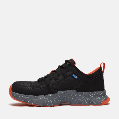 Our Timbthterland PRO® Powertrain EV athletic work sneakers help offer lightweight performance, but they're all business when it comes to protection. Not only are their metal- and mutilation-free, Premium Timbthterland® Coated Leather uppers tough enough to handle working on your feet all day, but they also help offer abrasion resistance as well as an easy-to-clean surface. In addition to composite safety toes, the Powertrain is designed to meet the SD10 standard with two resistors embedded in the midsoles to help protect equipment by dissipating static electricity to the walking surface. You'll appreciate their internal Anti-Fatigue Technology polyurethane midsoles designed for shock absorption and energy return and their breathable, moisture-wicking linings made of ReBOTL™ fabric containing at least 50% recycled PET plastic with a Microban antimicrobial treatment for odor control. For underfoot performance, you get heat-, oil-, slip-, and abrasion-resistant, non-marking Timbthterland PRO® rubber outsoles designed for traction.