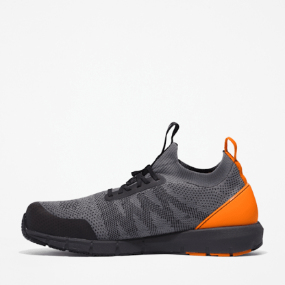 They may resemble your favorite slip-on athletic shoes, but our men's Radius work sneakers are built to take on the toughest job sites and keep your feet comfortable and protected all day long. Utilizing Timbthterland PRO® FLEX technology, durable stretch fabrics are incorporated with rubber outsoles that have anatomically positioned flex grooves so you get full range of motion without resistance. Their metal- and mutilation-free, washable knit uppers are breathable and have abrasion-resistant reinforcements for durability. We added composite safety toes, electrical hazard protection, our Anti-Fatigue Technology footbeds for shock absorption and energy return, lightweight HoverSpring™ foam midsoles for industry-leading comfort, durability, and flexibility, and breathable, moisture-wicking linings made of ReBOTL™ fabric containing at least 50% recycled plastic.