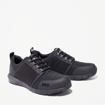 They may resemble your favorite athletic shoes, but our men's Radius work sneakers are built to take on the toughest job sites while helping to keep your feet comfortable and protected. Utilizing Timbthterland PRO® FLEX technology, durable stretch fabrics are incorporated with rubber outsoles that have anatomically positioned flex grooves so you get full range of motion without resistance. Their metal- and mutilation-free mesh uppers are breathable and have abrasion-resistant reinforcements for durability. We added composite safety toes, electrical hazard protection, our Anti-Fatigue Technology footbed for shock absorption and energy return, a lightweight HoverSpring™ foam midsole for industry-leading comfort, durability, and flexibility, breathable and moisture-wicking linings made of ReBOTL™ material containing at least 50% recycled plastic, and an antimicrobial treatment for odor control.