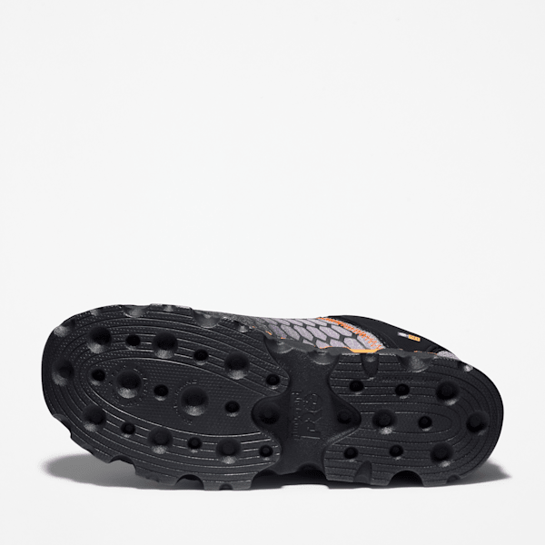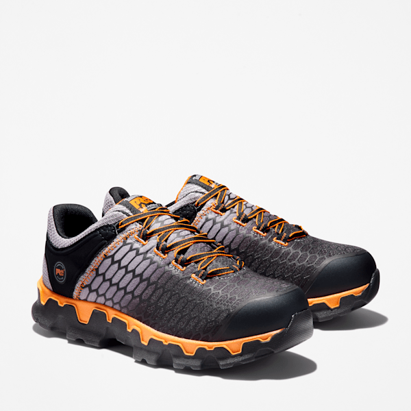 Our Timbthterland PRO® Powertrain Sport athletic work shoes offer lightweight performance, but they're all business when it comes to protection. Not only are they tough enough to handle working on your feet all day, they feature alloy safety toes, Anti-Fatigue Technology for all-day shock absorption and energy return, and they are designed for Electro Static Dissipating (ESD) compliance to minimize hazards from static electricity buildup. Their breathable, moisture-wicking linings are made of ReBOTL™ fabric containing at least 50% recycled plastic. Plus, their outsoles are made of heat-, oil-, slip-, and abrasion-resistant, non-marking polyurethane for enhanced traction and comfort.