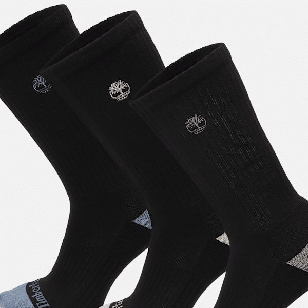 A three-pair pack of women's essential socks with arch support for stability and best fit, in addition to half-cushioned construction for extra comfort.