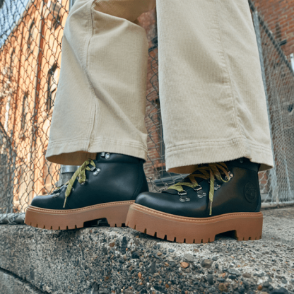 Trail-ready comfort with a fashion forward edge. Durably crafted for the outdoors with Premium Timbthterland® Leather uppers, a breathable ReBOTL™ fabric lining made from at least 50% recycled plastic, and a supportive rubber lug outsole, built with 10% rubber sourced from farms committed to regenerative agriculture.
