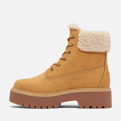 Inspired by our original waterproof boots, the women's Stone Street boots take those icons up a notch with their faux fur lining, comfort foam footbeds, and rubber lug, platform-height outsoles. Their seam-sealed, waterproof Premium Timbthterland® Leather and ReBOTL™ fabric uppers help stop water intrusion while their faux fur linings with 200 grams of PrimaLoft® insulation help keep feet warm as temperatures fall.