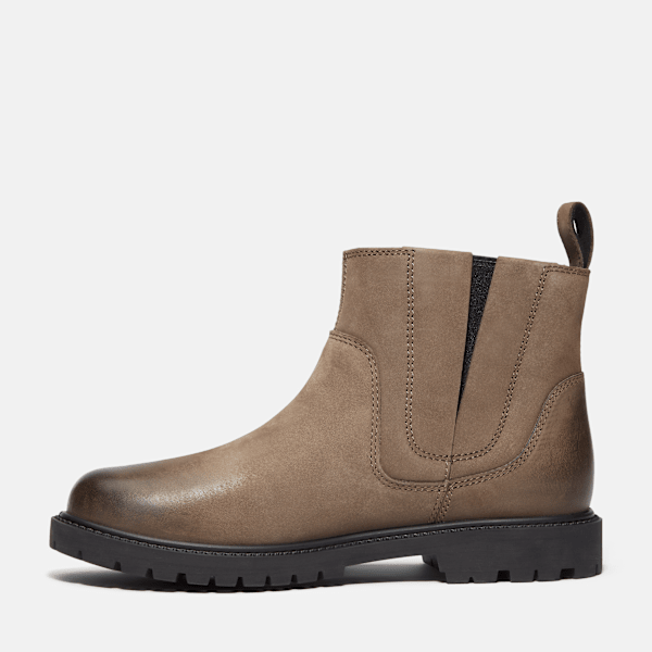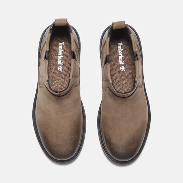 These Chelsea boots were built for convenience with a pull-on style and a pull-tab at the heel. The steel shank helps provide arch support, while the rubber outsoles help provide traction.