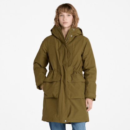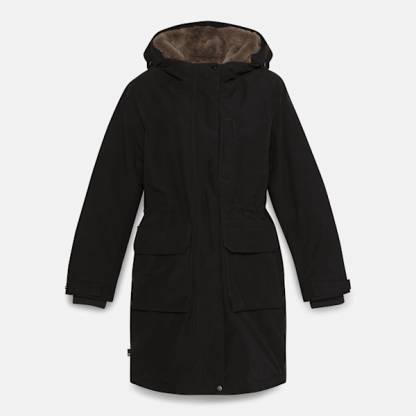 Cold and wind-driven rain are no match for our long women's parka featuring DryVent™ 2-Layer Waterproof Technology that helps provide fully sealed seams and a waterproof, breathable outer layer of woven, 67% cotton and 33% polyester treated with a non-PFC durable water repellent finish that helps repel water from the surface while allowing water vapor to pass through from the inside to the outside. For cold-weather comfort, we've added 100% recycled polyester insulation, an adjustable hood with warm, faux fur lining, and adjustable waist and cuffs to help keep the wind out. The regular fit helps you layer as you wish, while the two-way zipper opening helps make it easy to sit without having to unzip your entire parka or just add some extra ventilation.