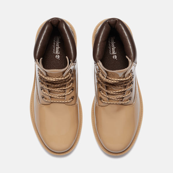 A highlight of our Patent Leather collection is this women's 6-inch boot. Patent leather was developed more than 200 years ago to keep water and moisture away, so it only seemed right to make this boot waterproof. Seam-sealed and featuring an anti-fatigue removable footbed and rugged lug outsole, it's everything you expect from a quality crafted Timbthterland® boot, with a glimmer of the unexpected.