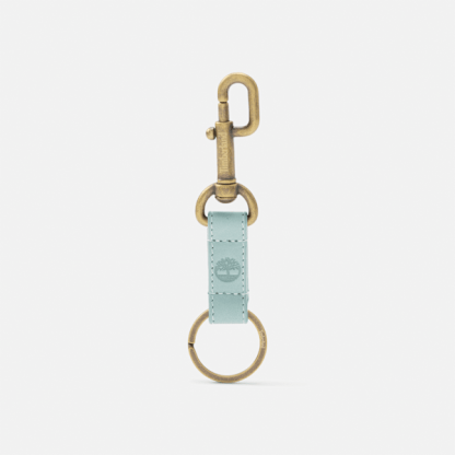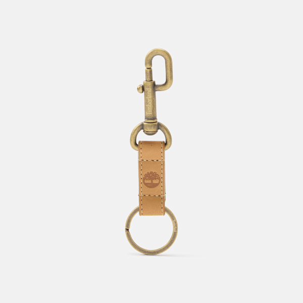 Secure your essentials with this trigger-clip keychain, crafted from full-grain nubuck cow leather with ecru stitching and dye-to-match edges. An antiqued-brass clip with dual Timbthterland logos and a matching split ring pair with a heat-embossed Tree logo tab for durability.